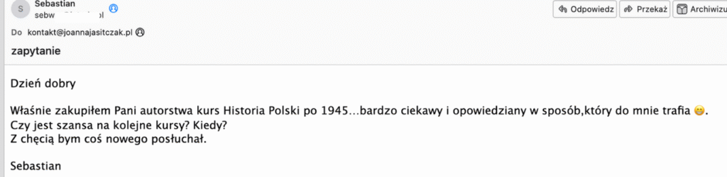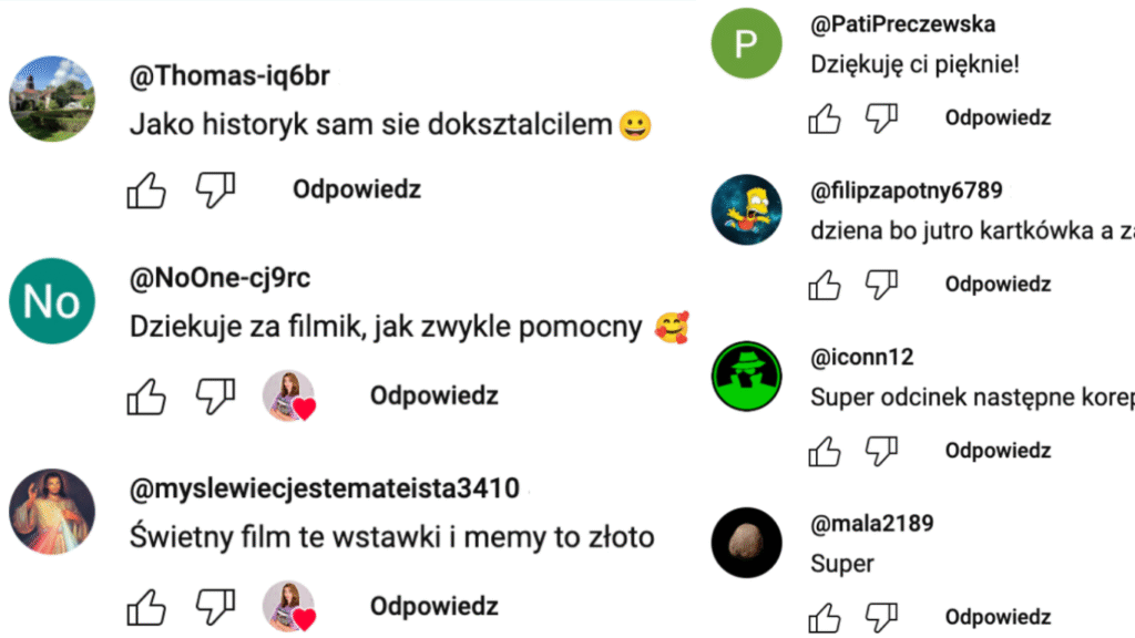 Nie wierz mi na słowo, zerknij na to co piszą Uczestnicy mojego poprzedniego kursu z „Historii Polski po 1945 r.” oraz Widzów mojego kanału YouTube.