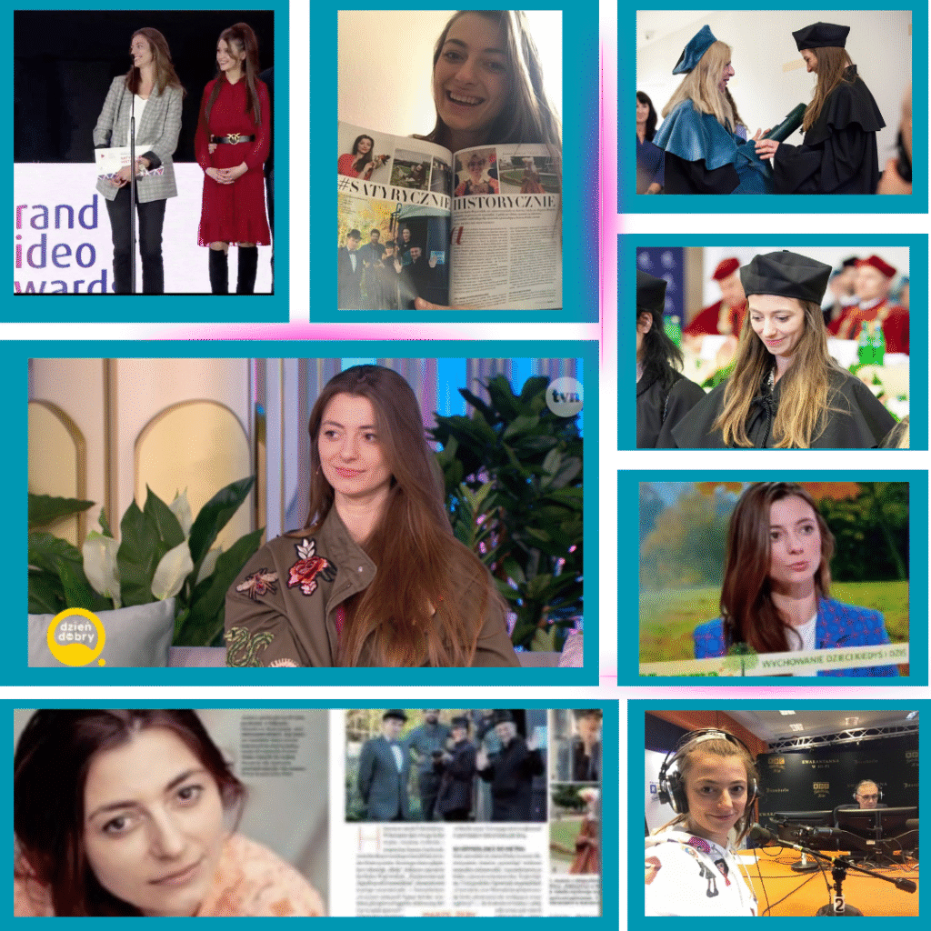 Przygotowuję filmy dokumentalne, pracuję z mediami, prowadzę szkolenia i webinary, a w 2021 roku mój film „Odebrano mi młodość – Wspomnienia Powstańców Warszawskich” zdobył nagrodę Grand Video Awards.