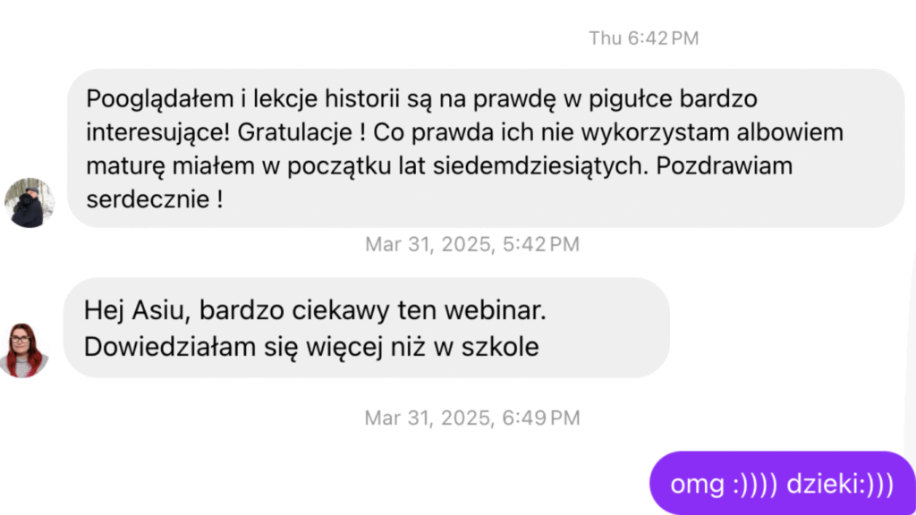 A jeśli jesteś uczniem szkoły podstawowej lub ponadpodstawowej i nie myślisz o maturze z historii – spokojnie!Wkrótce ruszą też kursy dla „niematurzystów”, którzy chcą uczyć się historii inaczej niż z podręcznika. Stay tuned! 😊